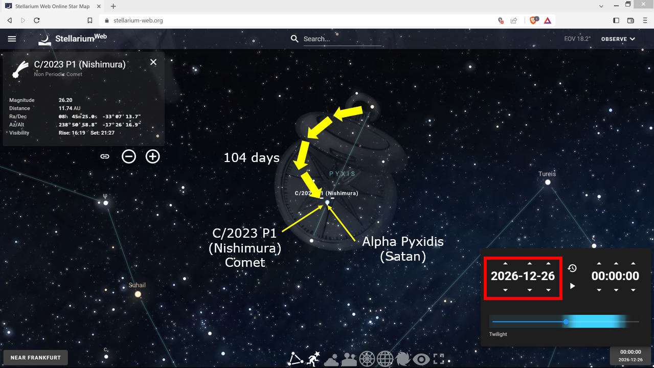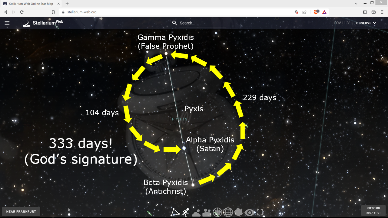 To make absolutely certain that we are not making all of this up in our minds, or reading something into this Nishimura development that wasn't truly there, God signed His name a second time with the comet's 333-days at Pyxis as yet another redundent confirmation of His involvement shown below.