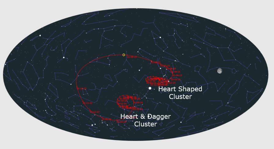 Once these heart-named clusters were identified, through the Holy Spirit, it was time to perform a deeper dive into their potential relationship with the Nishimura Comet. That is when this initial exercise took on a life of its own and I’ve had little sleep over the past few days.